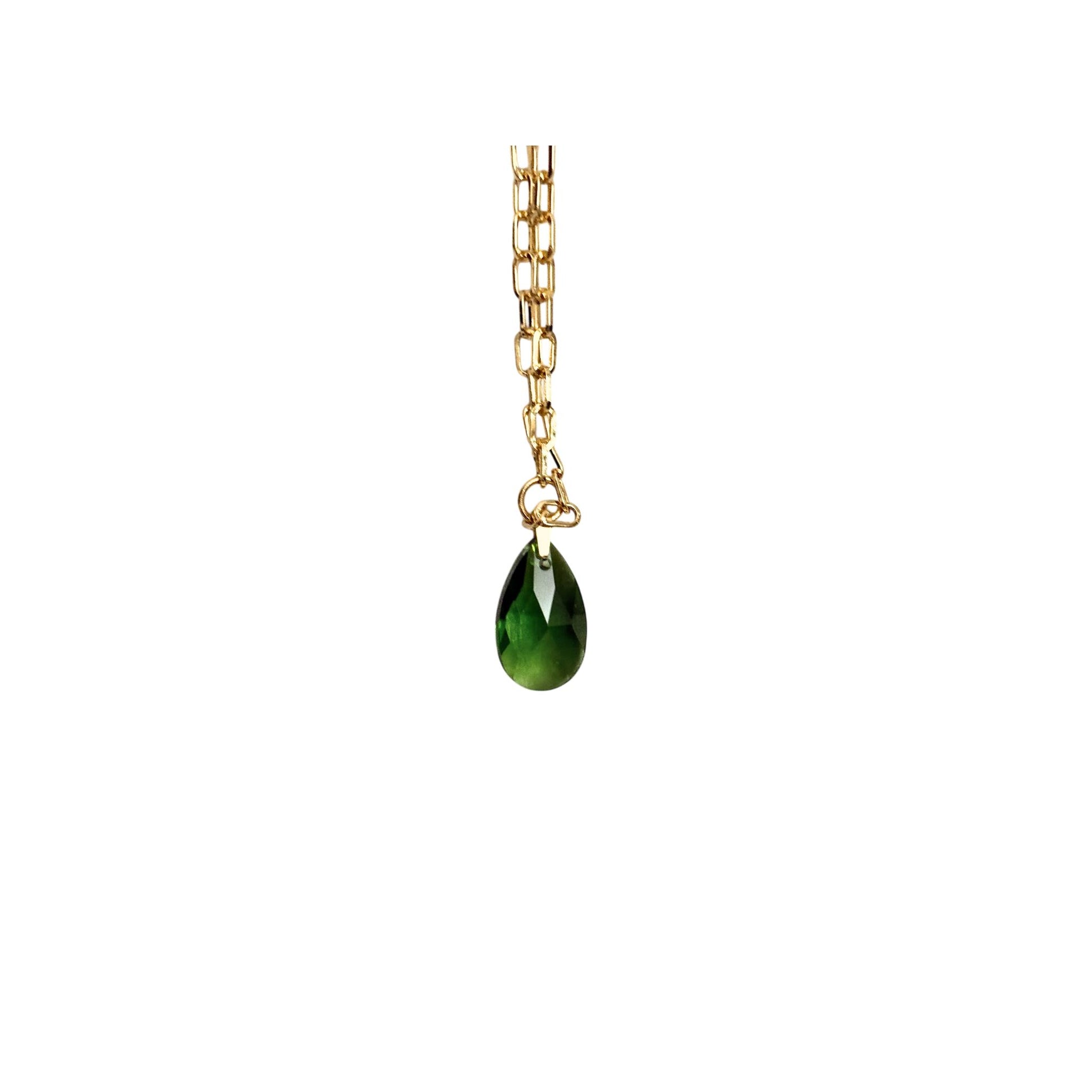 Collar con cadena de acero inoxidable y colgante de cristal facetado en forma de lágrima.