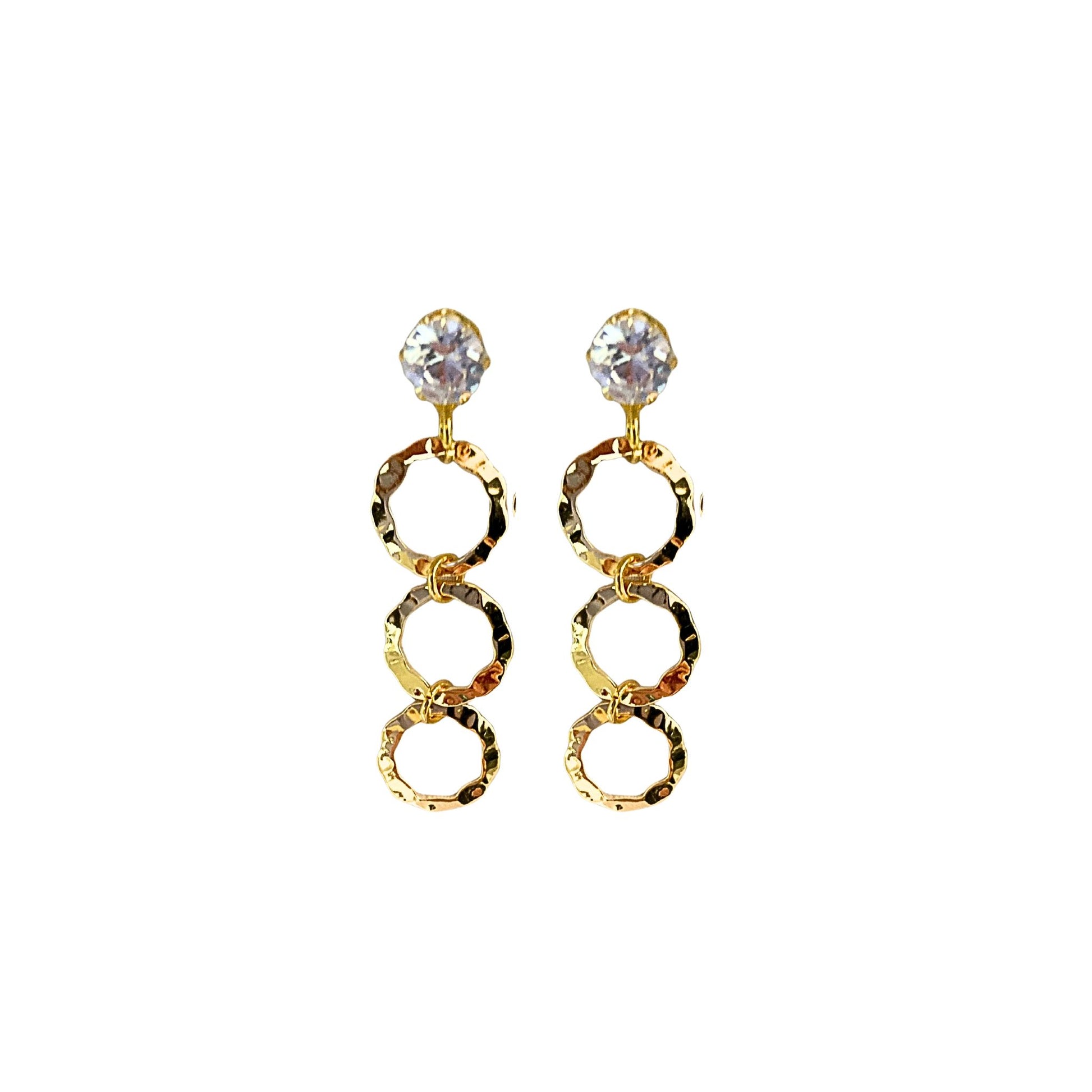 Stand out with these long, eye-catching earrings , perfect for your most special events. Designed with cubic zirconia hooks, they add a touch of elegance and sparkle. They are crafted from 316 surgical stainless steel, ideal for sensitive skin, and decorated with irregular brass circles plated in 18k gold, enhancing their sophistication.